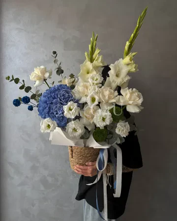 Букет "Алинур" из роз, гортензий и лизиантусов