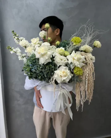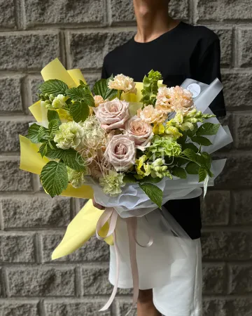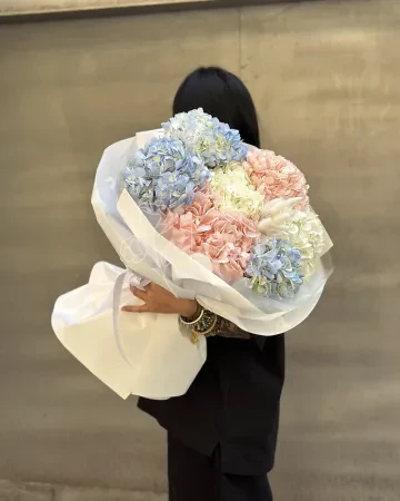 Букет "Бакыт" из роз, гортензий и дельфиниума