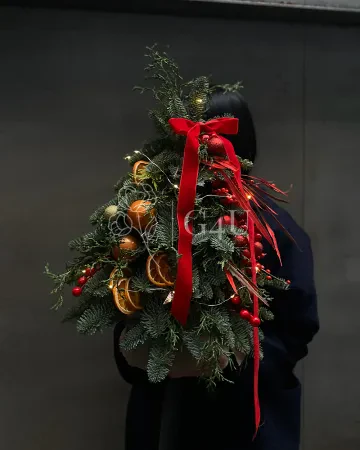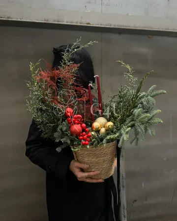 Композиция в кашпо "Лана" из роз, хризантем и гвоздик