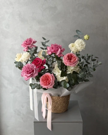 Композиция в кашпо "Marizza" из роз и пионовидных роз