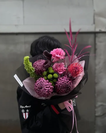 В этом букете сочетаются мягкие и насыщенные оттенки, создавая гармоничный и романтичный образ. "Кумыс" прекрасно подойдёт для выражения самых тёплых чувств и станет прекрасным подарком для любого случая, подчёркивая красоту и изящество момента.