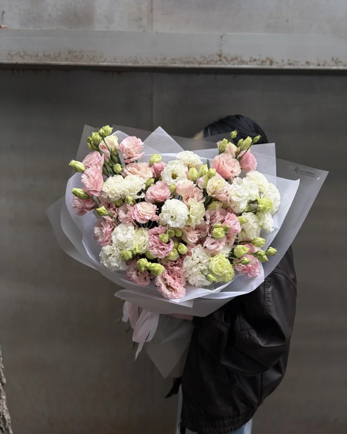 Букет «Amelisse» — нежная и изящная композиция из лизиантусов с мягким, романтичным настроением. Лёгкий, воздушный и утончённый, он передаёт искренность чувств и подойдёт для особого, трепетного момента 🌸