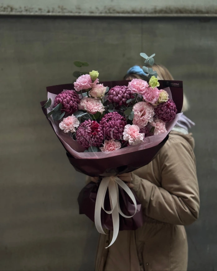 Состав: хризантемы, эвкалипт, лизиантус, гвоздика