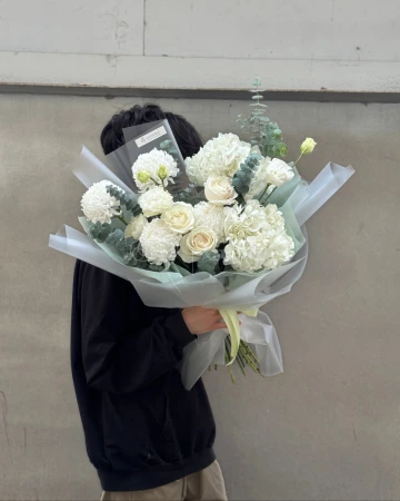 Букет выглядит нежно и гармонично, создавая атмосферу лёгкости и природной красоты, и станет прекрасным подарком для особого случая.