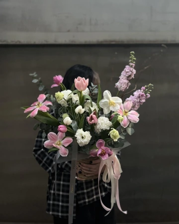 * Не бывает полностью одинаковых букетов. Цветок живой и всегда немного разный. Он может отличаться в зависимости от сезона, поставки или актуальных остатков. При сборке вашего заказа допустимы замены, но мы всегда будем стремиться сохранить стиль, форму, цветовую гамму и ценность состава.