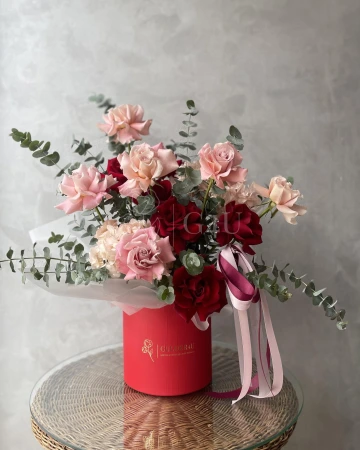 Состав: гортензии, розы, хризантемы, эвкалипт, лилии