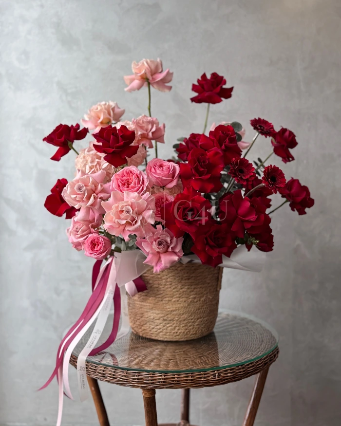 Композиция в кашпо "Juanita" из роз, гортензий и гербер