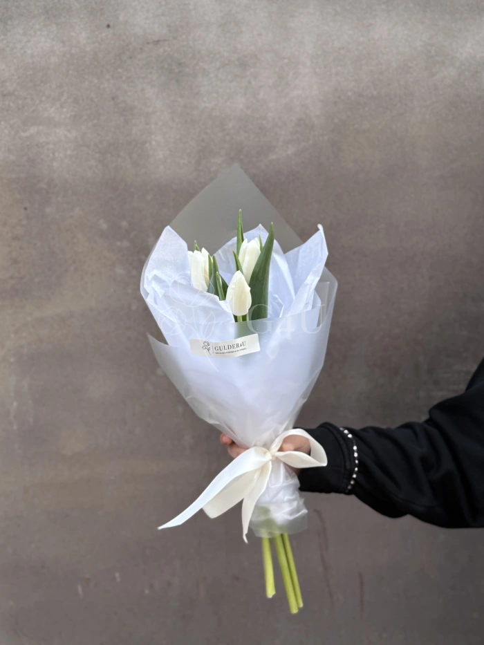 Моно букет из 3 белых тюльпанов